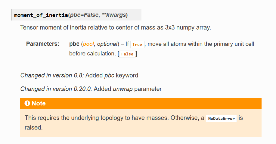 NoDataError. The dummy methods (stubs) are picked up by sphinx and appear in the documentation. Also, the transplant methods from topology attributes that are not present in a given universe do not raise a confusingAttributeErrorany more, instead, they raise aNoDataErrorthat specify which attribute is missing.Compared to #2418, this method does not produce the cool looking tables and does not automatically tell that an attribute is required in the doc. It also has the same issue with reference duplicates (see #2176 (comment)). However, it does not require any manual operation.