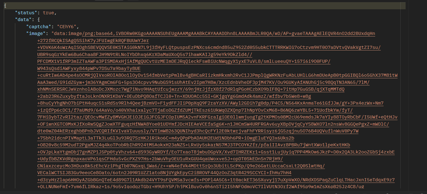 npm startBy hitting the root endpoint (/), the API returns a PNG image containing a captcha.