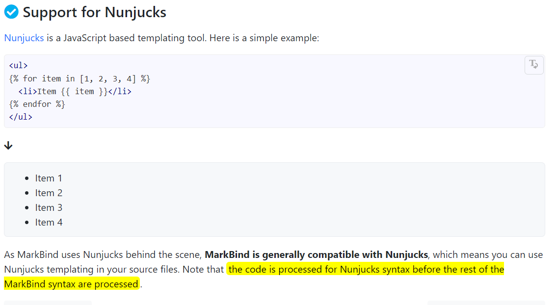 Currently only one usage of nunjucks code and output which will be corrected in this PR