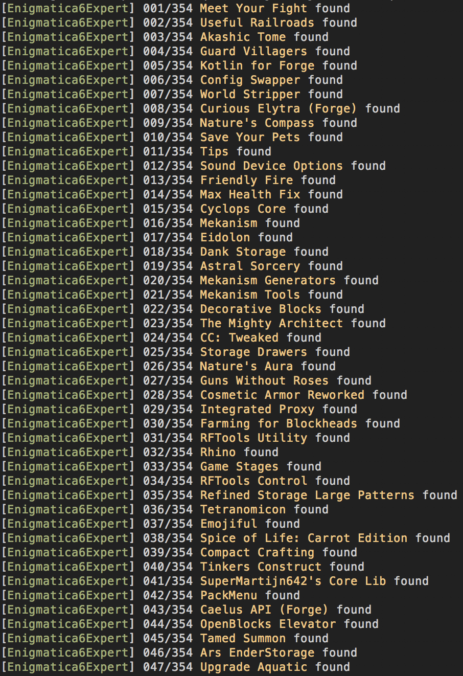I have also included a progressbar in the output, not being able to see the progress is what inspired me to make EnigmaticaModpacks/Enigmatica6#5013 several days ago (never had run your modlist creator myself for that modpack and i had no idea how long it could take without any sort of indicator as to its progress), hence hoping it makes it into the original: