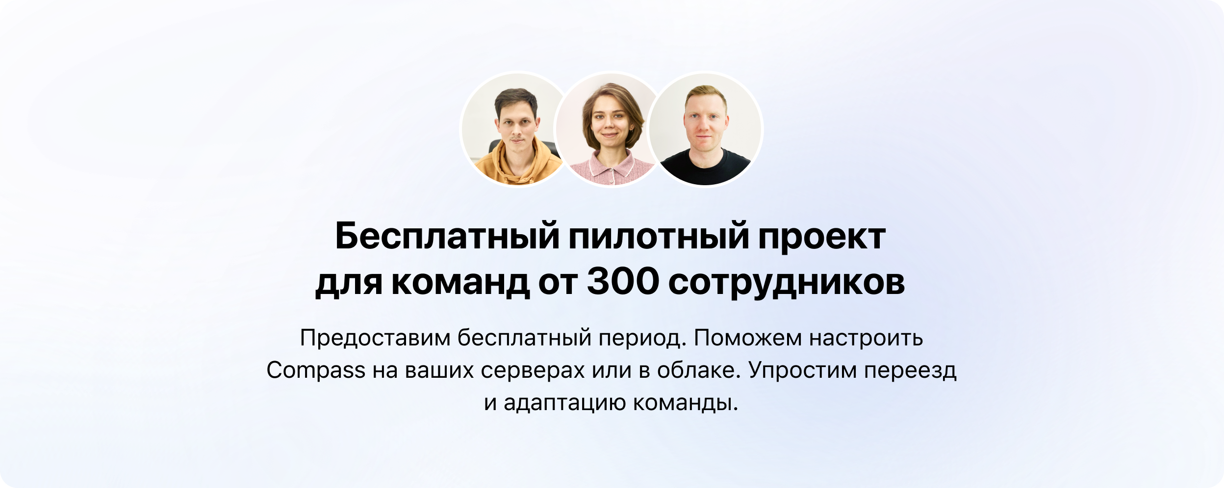 При большем количестве активных пользователей рекомендуем получить консультацию у специалистов Compass.