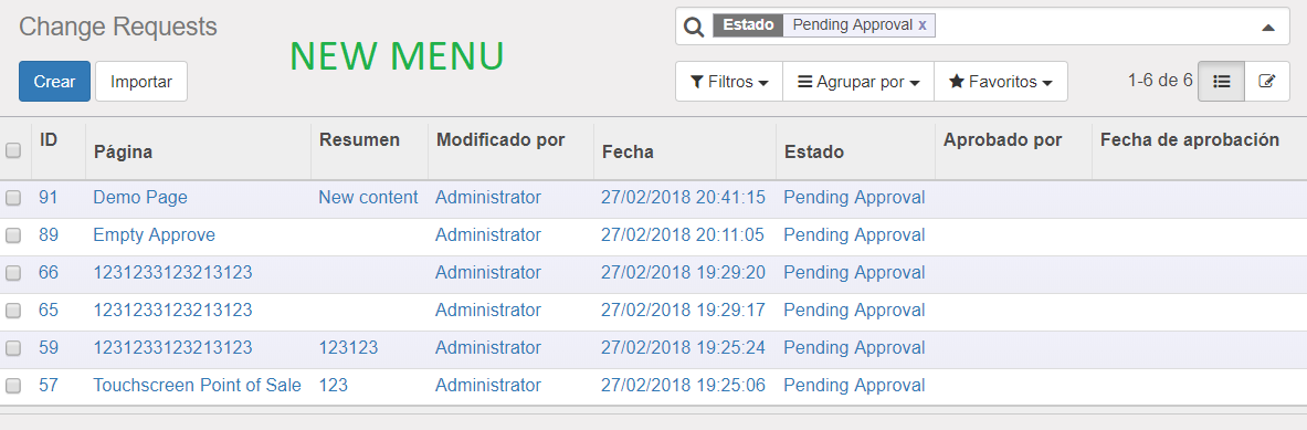 * [UPD] README.rst * Translated using Weblate (Portuguese (Brazil)) Currently translated at 93.9% (31 of 33 strings) Translation: knowledge-11.0/knowledge-11.0-knowledge Translate-URL: https://translation.odoo-community.org/projects/knowledge-11-0/knowledge-11-0-knowledge/pt_BR/ * [ADD] document_page from odoo/7.0 * use new API * [FIX+IMP] document_page: * Add dependency to knowledge * Adding hack in document_page_history to allow calling method that don't exists * document_page_history don't have _sql attribute * Filter more fields * Slovene translations added * [FIX+IMP] document_page: * Changed history widget to html. * Improved views and added followers to pages. * Updated document_page pot and es translations. * document_page:^Cissing dependency. * Translations sync with templates * [MIG] document_page: Migration to 9.0 * [MIG] document_page: Migration to version 10.0 (OCA#120) * [MIG] Migration to version 10.0 * [FIX] Comments and CI errors * [FIX] ValueError: External ID not found in the system: base.menu_base_partner * [FIX] ValueError: Wrong value for ir.actions.act_window.target: 'inlineview' * [FIX] Based on @lasley comments * [FIX] External ID not found in the system: base.group_document_user * [IMP][10.0][document_page] Change Requests and workflow improvements on documents (OCA#155) * OCA Transbot updated translations from Transifex * [MIG] document_page: Migration to 11.0 * [MIG] document_page: Migration to 11.0 continue migration * [UPD] Update document_page.pot * create document_page_approval module (../7.0pageapproval/ rev 1) fix status bar in page approval (../7.0pageapproval/ rev 2) change approval workflow in page history and started to add showing approved page in normal page (../7.0pageapproval/ rev 3) show last approved content and aproved by (../7.0pageapproval/ rev 4) Fix bug on page creation (../7.0pageapproval/ rev 5) add status in history tree view (../7.0pageapproval/ rev 6) add a need approval field and hide the workflow when no approval needed (../7.0pageapproval/ rev 7) add access validation to approval (../7.0pageapproval/ rev 8) give rigth to Page aprover group on the page_history model and hide the button for unallowed group thought the security isn't enforced a the orm level (../7.0pageapproval/ rev 9) made invisible the prover group when not needed (../7.0pageapproval/ rev 10) add email to aprovers group's members (../7.0pageapproval/ rev 11) * [IMP] Documentation [ADD] Translation file + french [FIX] employee_id field does not exist [FIX] user_email field deprecated * [IMP] Split long lines * [ADD] Images * Fix pep8 * Set document_page_approval as unported * Slovene translation added * [IMP] - Changed string from email template. * [FIX] - document-page-approval: Fixes OCA#60 url not valid when website module is installed. * [UPD] prefix versions with 8.0 * [MIG] Make modules uninstallable * OCA Transbot updated translations from Transifex * [FIX] remove en.po that was erroneously created by transbot * [MIG] document_page_approval * [IMP][10.0][document_page_approval] Change Requests and workflow improvements on documents (OCA#155) * [FIX] View * remove obsolete .pot files [ci skip] * start porting fix act_draft and minor ui fix remove unused variables change order of xml data files * Comment workflow that cause the error It should work but further errors could help understand what's going Commented other necessary part Add back workflow Add dependency to knowledge * [IMP] - Improved views to match document_page improvements. [IMP] - Added notification to followers when a new version is approved. * [ADD] - Updated document_page_approval pot and added es translations. [IMP] - document_page_approval: Updated spanish translation. * Translations sync with templates Translations and templates sync Updated languages * document_page_approval migration from Odoo 8.0 to Odoo 9.0 Lint error corrected test improved lint error corrected in test file readme corrected test improved test of document page history workflow added CI error corrected dreipst comment Migration to new api improved in model's file and data tag remove in xml file code totally migrate to odoo 9.0 api * test bug fixed test error fixed Lint error improved * [MIG] Make modules uninstallable [MIG] Rename manifest files * [ADD] setup.py * [MIG] document_page_approval: Migration to 11.0 * [UPD] Update document_page_approval.pot
