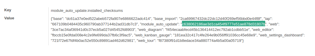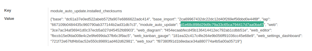 module_auto_updatemodule has been migrated from 11.0 to 12.0, I performed a functional test to check the behavior and it worked as expected:upgrade_changed_checksum()method was called:module_auto_updatemodule and checksums generated the second time the method was executed: