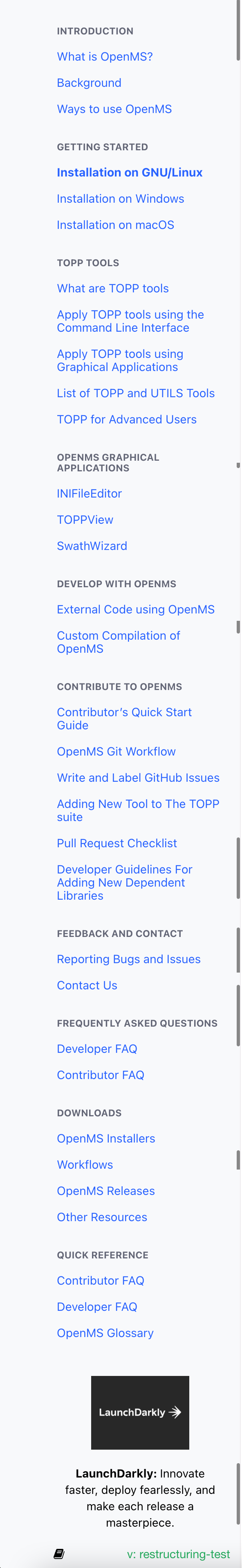 Restructure and Rearrange OpenMS RTD Documentation #112