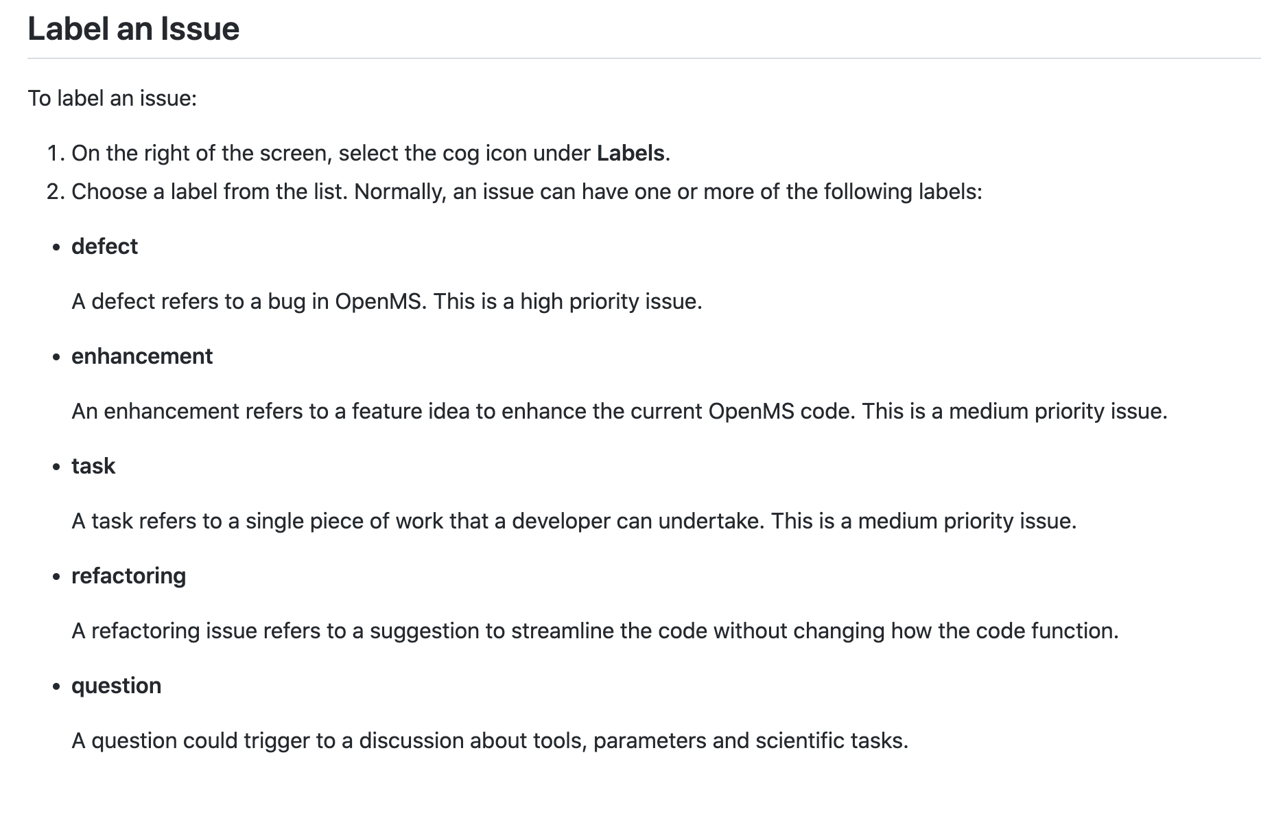 | 2. Choose a label from the list. Normally, an issue can have one or more of the following labels: | ||