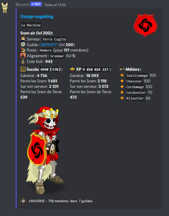 Looking for a Discord bot allowing you to follow all the news of the game Dofus-Touch on your Discord server? Bwuno makes it possible to follow all Twitter, Almanax or official Forum events while offering a quick way to access information about guilds or characters from the official site.