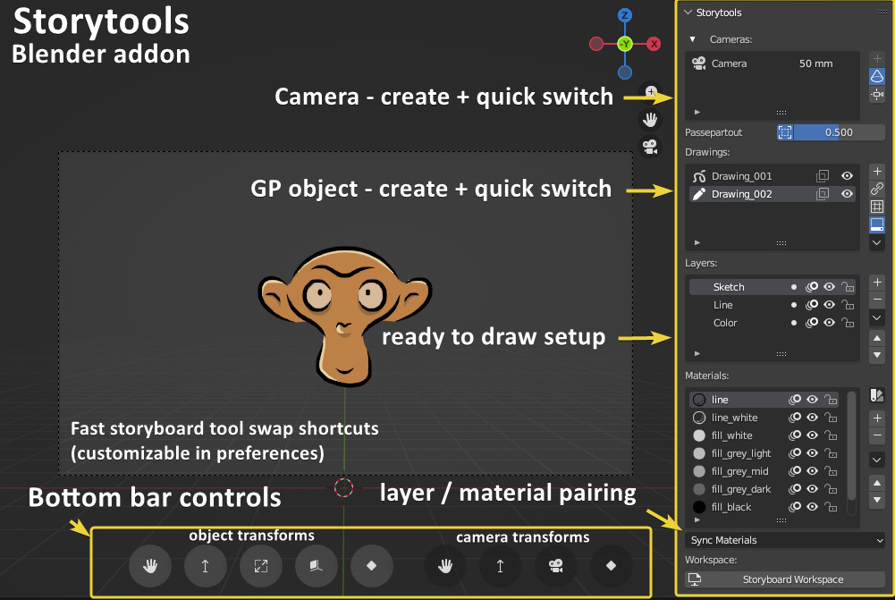 ⬇️ Install directly from Blender: Edit > Preferences > Get Extension > search "Storytools" and click install