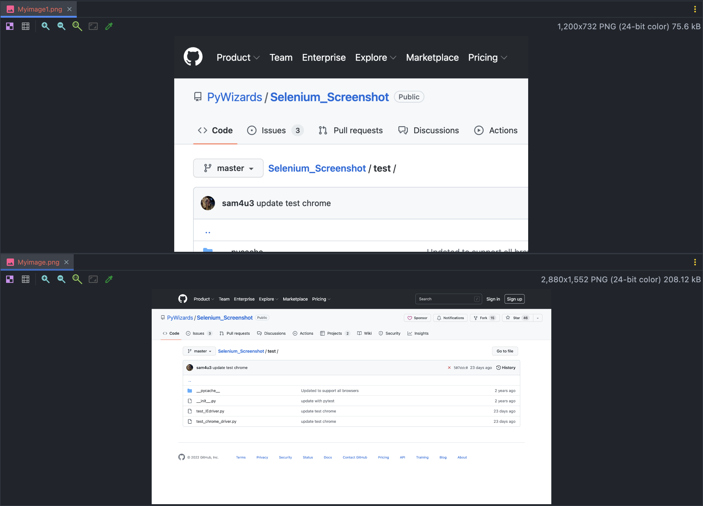 Now take as reference the size of the screenshot coming from selenium webdriver to create a canvas and paste single or multiple images