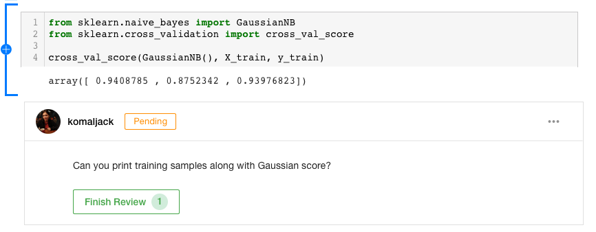 - But actually appears as a conversation on ReviewNB (along with notebook context)