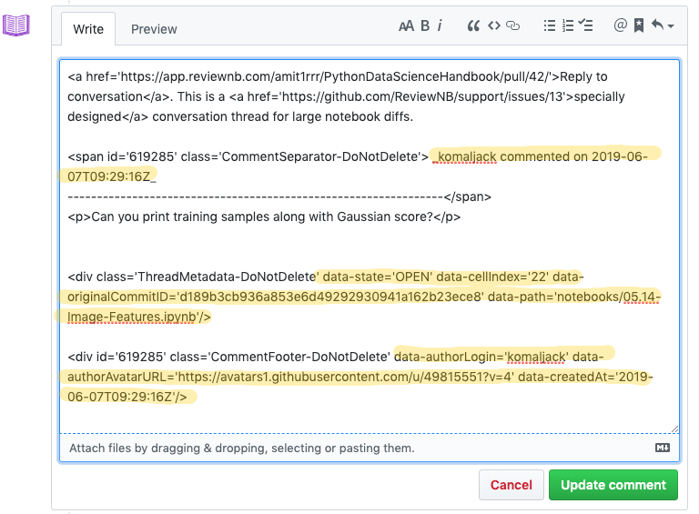 - Say you wrote a comment on large notebook diff on ReviewNB.