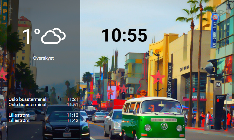 - Shows the nearest departures from the bus station nearest to us retrieved from the Ruter API.