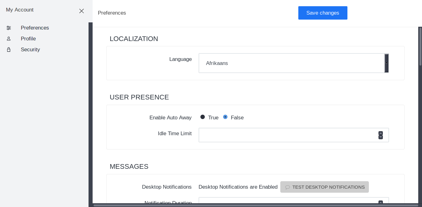 - Open home page or administration/myaccount pages from left pane. Horizontal scroll is visible.