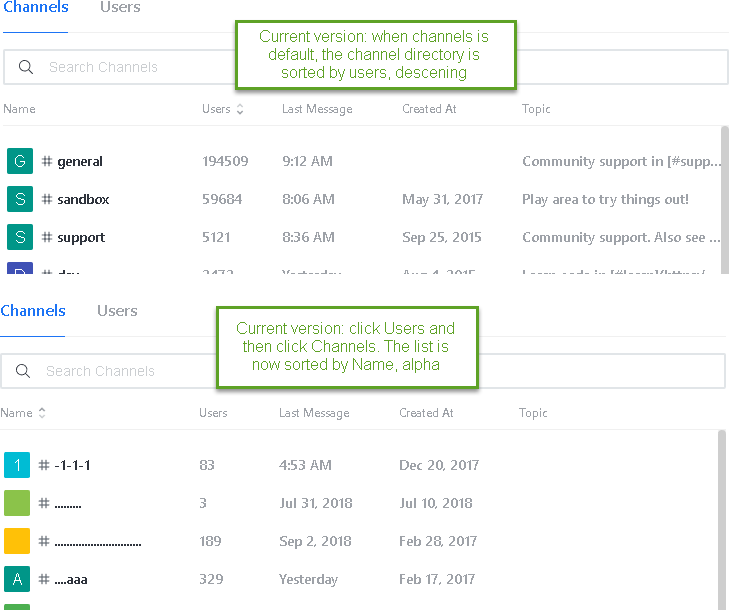 @mnlbox Here is the new setting in administration. One thing that became more noticeable when channels was no longer default was the default sort on the channels list. It was different depending on whether the list loaded by default or if you clicked Users then Channels. This PR makes the initial sort the same for both (by User count, descending) |
