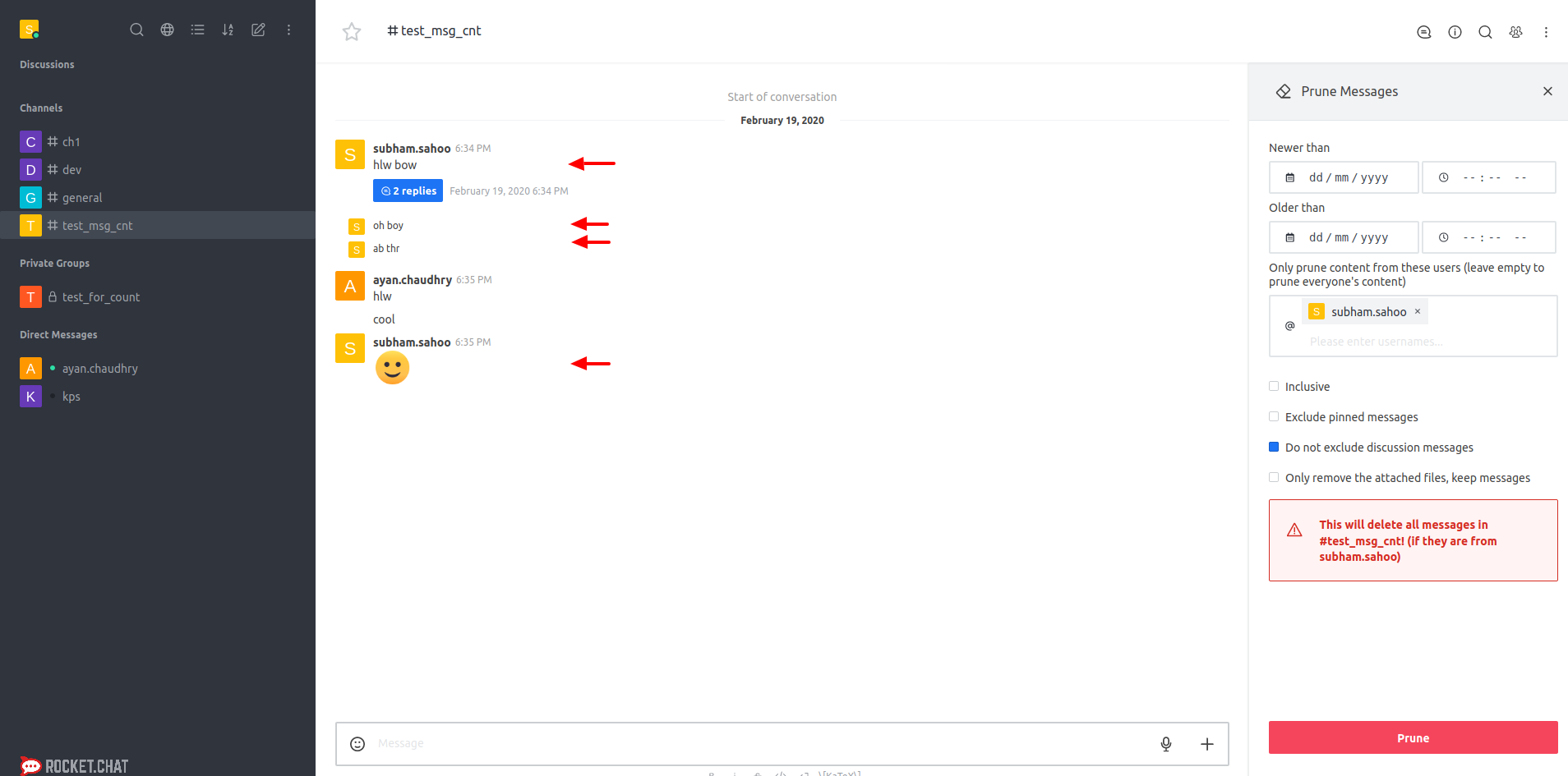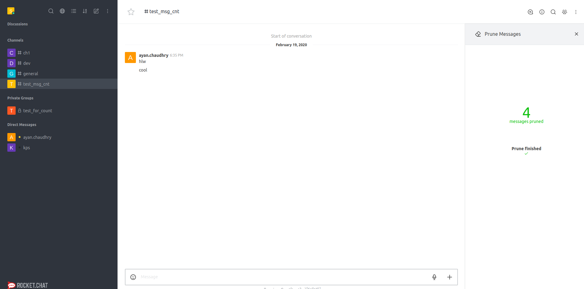 now decreased the value of the message count variable for the roomId in which the message is being deleted/pruned.