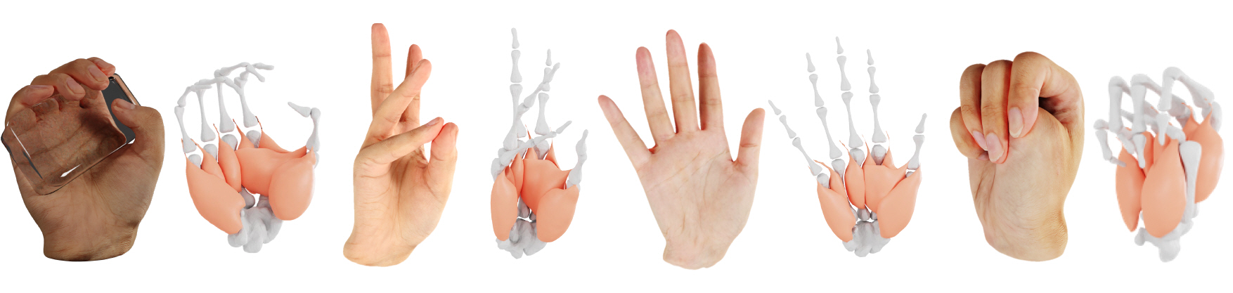 This model and code was developped and used for the paper NIMBLE: A Non-rigid Hand Model with Bones and Muscles for SIGGRAPH22. See project page.