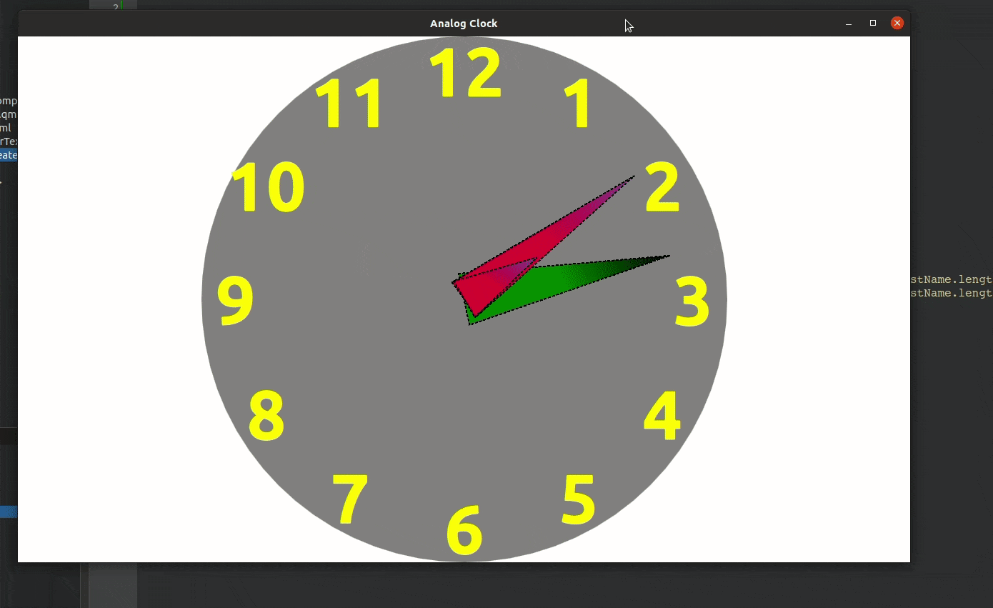 AnalogClock AnalogClock in QML (Qt/C++) just creating simple analog clock . this clock is fully responsive. OutPut on [Mon 28 Feb 2022]: TODO: create clock by shader create clock by canvas