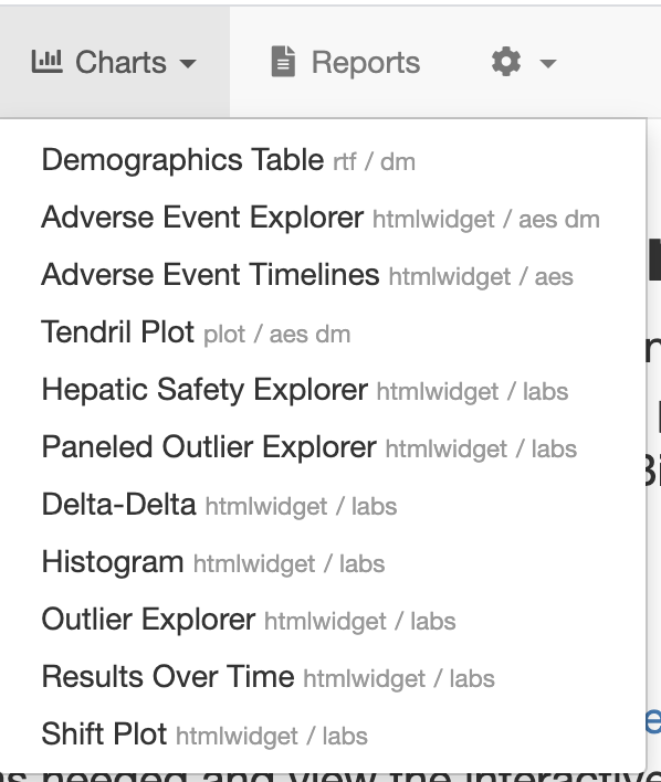 Please review in conjunction with SafetyGraphics/safetyCharts#67. Confirm that chart nav is updated to include chart type and domain, and that all charts are running as expected after version updates. Use