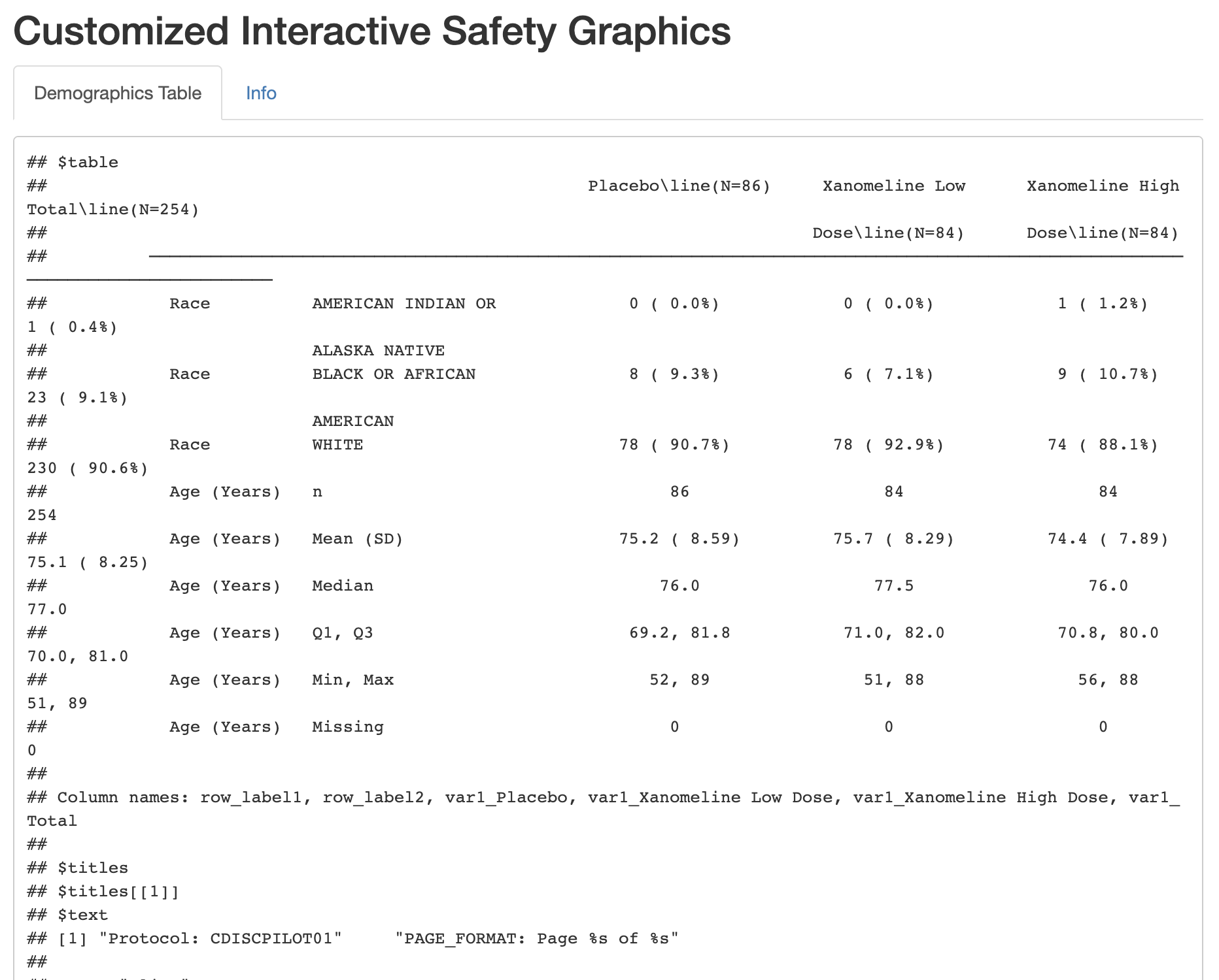 Yeah, Shift Table is no longer in the default build after SafetyGraphics/safetyCharts#67, demographics table is exporting for me, but it's just printing the R object (screenshot below). The download RTF button on the chart page is the real "export" workflow for now. So, I think we should just set the export flag to false for it for now. Filed SafetyGraphics/safetyCharts#70 to deal with that in safetyCharts.