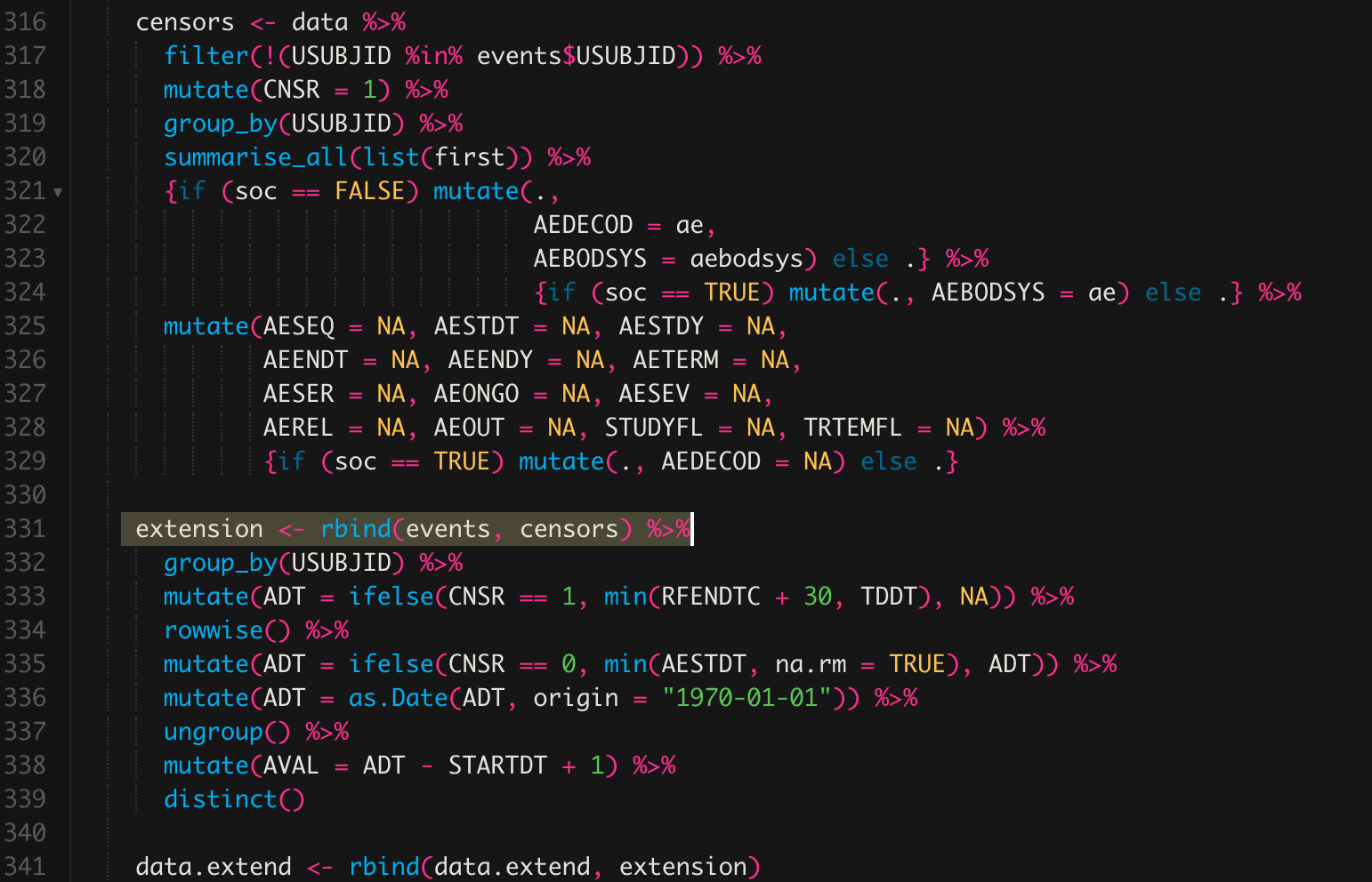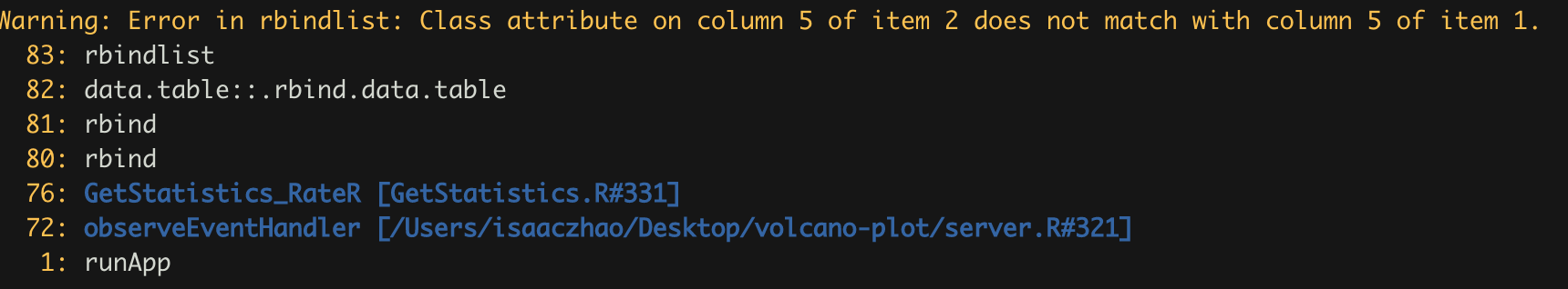Cannot calculate statistics due to error using test_data.csv binding events with censors possibly due to two datasets having mismatching variable classes with rbind?
