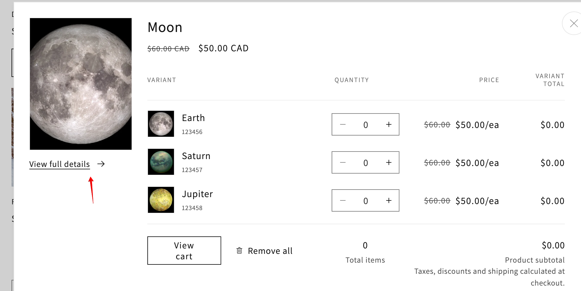 Center "View cart label" in the Quick add modal