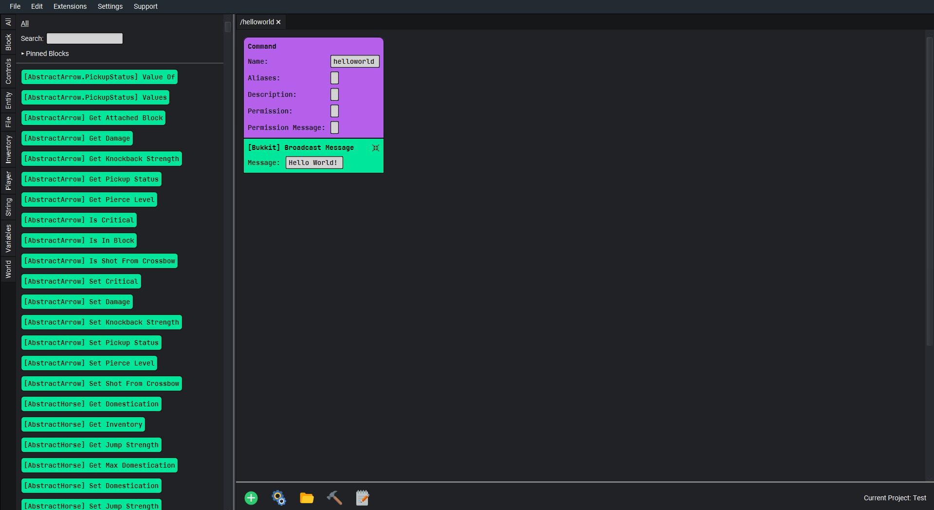 Visual Bukkit is a visual programming language for Bukkit plugins, allowing you to create plugins without knowing Java.