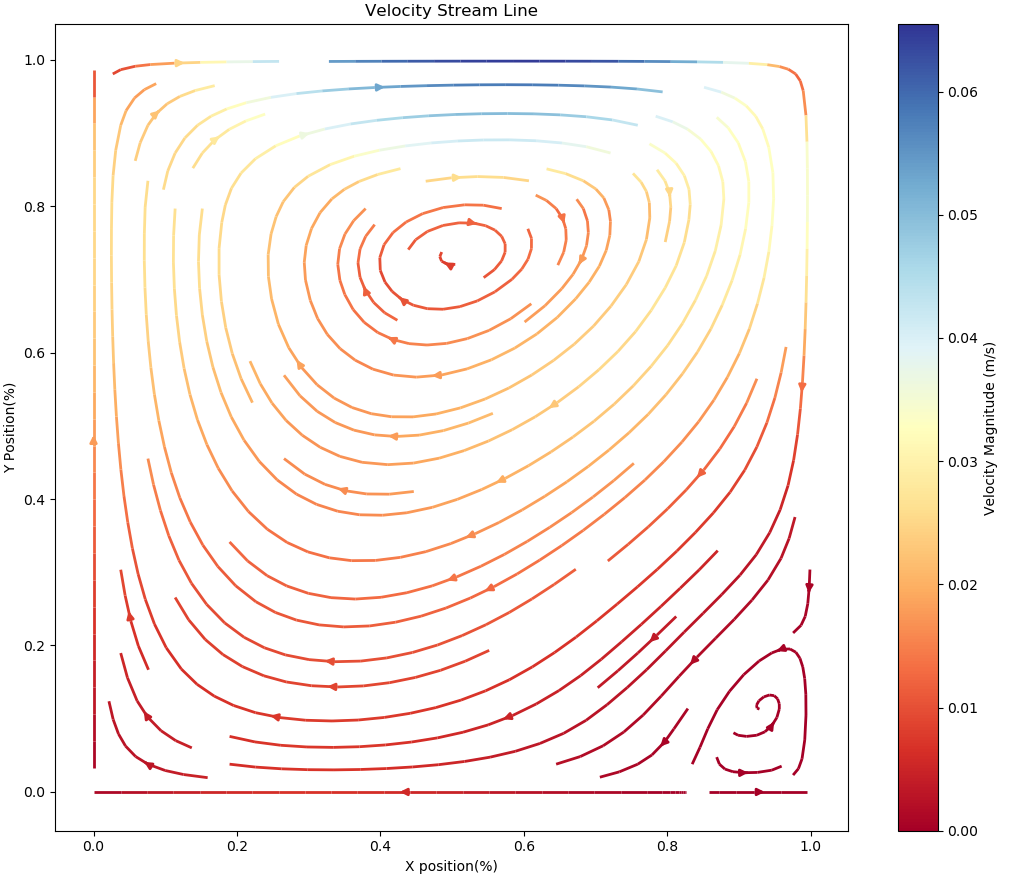 (Fig 6.) Stream line of the Cavity Flow Field