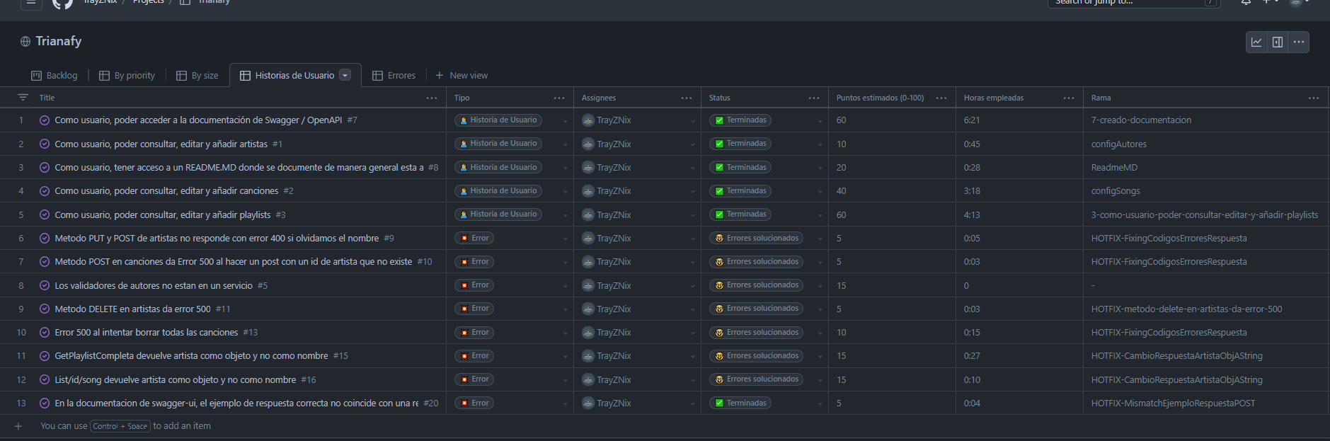 Trianafy es una API usada para almacenar datos sobre música, siendo esto artistas, canciones y playlist