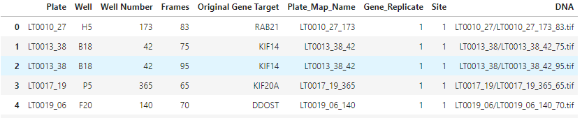 idrstream_cp. This means that there is only one frame per line of location metadata (instead of multiple frames in one line of location metadata). Also, columns have been added to the location metadata forPlate_Map_Name,Gene_Replicate,Site, andDNA. The changes are shown below: