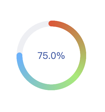 gradient-ring-progress 渐变环形进度条 gradient-ring-progress是js编写的渐变环形进度条插件,该插件小巧不依赖其他的库 Demo 点这个看看呗 点这个试试呗 Install npm i gradient-ring-progress -S Quick Start <div id="progress" style="height: 500px; width: 500px;"></div> import Progress from 'gradient-ring-progress' const progress = new Progress({ dom: document.getElementById('progress') }) progress.init() Options 参数 默认值 含义 dom - [必填]进度条的父级元素 color [['rgba(238, 73, 41, 1)', 0], ['rgba(149, 236, 105, 1)', .5], ['rgba(86, 179, 255, 1)', 1]] 颜色值[[颜色1,百分值], ...] type canvas 实现方式(canvas, svg) 现在只有canvas value 0.75 值, 0到1之间的数值 num 300 分段数,越大渐变越精细 round true 是否圆角 duration 3000 动画时长(需要大于分段数) innerRadius 50 内圆半径 outerRadius 60 外圆半径 degree 0 开始角度 counterclockwise false 是否为逆时针 bgColor rgba(238, 239, 243, 1) 背景环颜色,不想要可设置为透明 fontColor rgba(58, 87, 168, 1) 文字颜色 fontSize 16 文字大小 suffix % 文字后缀 toFixed 1 小数位 Function 方法名 参数 含义 setVal val 修改进度条的数据 remove - 删除节点 Example