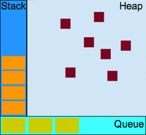 Stack为JS 可执行代码 提供执行环境;Heap存放Object类型数据(而primitive类型在执行的过程中直接存放在Stack中);而queue则用于存放异步调用所产生的message的队列。