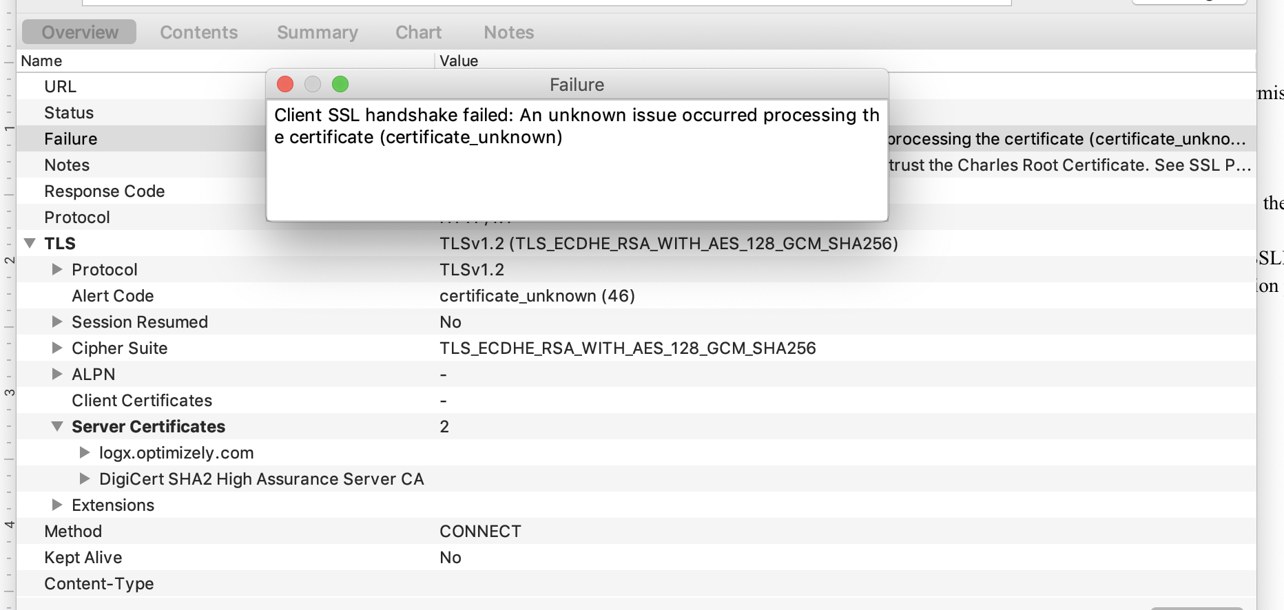 If we add the Charles certificate to the list of our trusted CAs, ideally the connection should be established and Charles should be able to view the contents.
