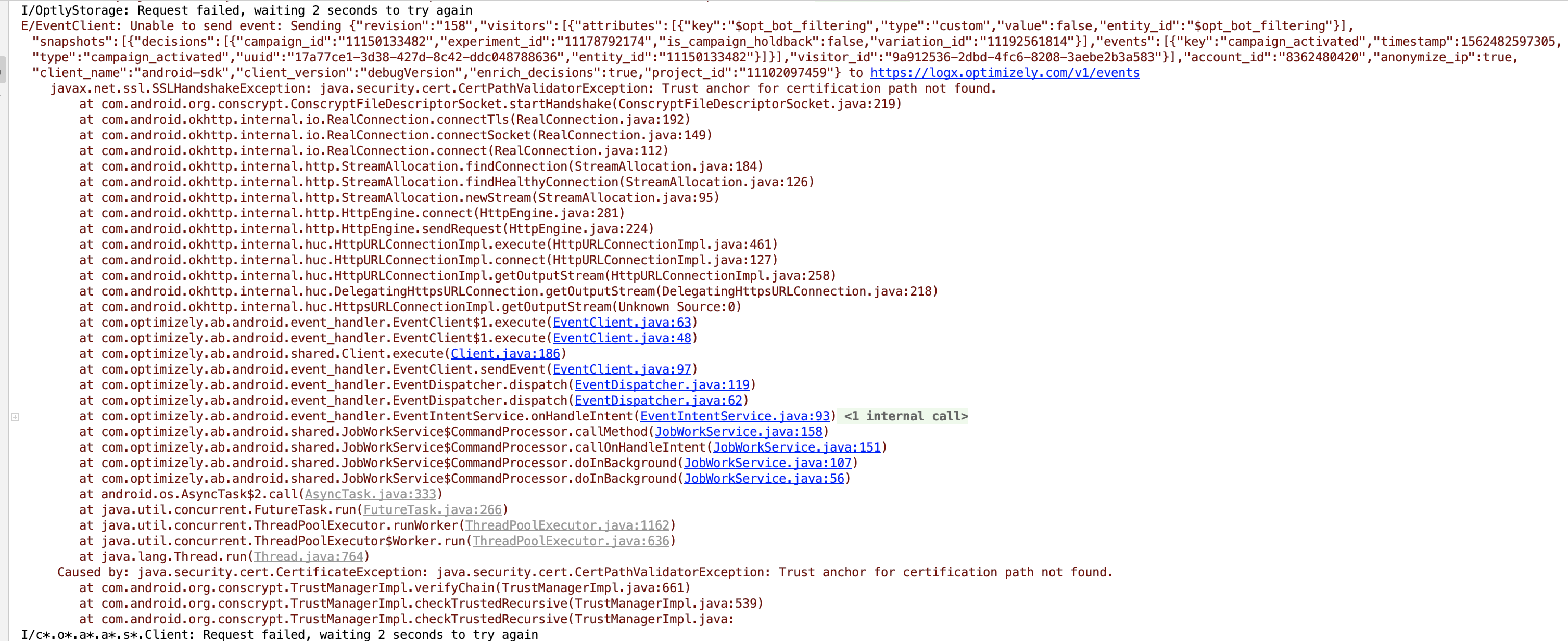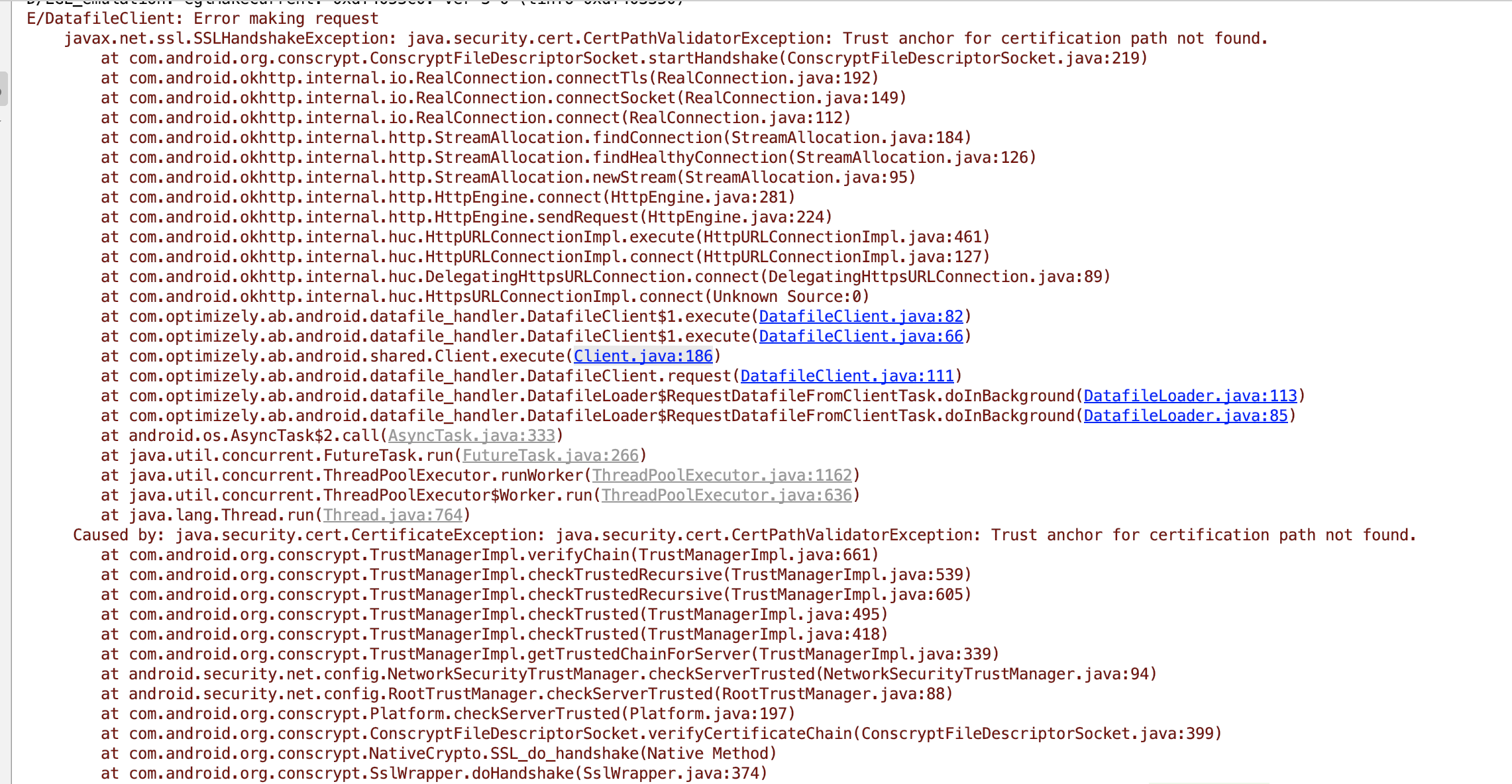 Clientclass incom.optimizely.ab.android.sharedpackage is used to make all it's Http connections. This class is primarily used to create a DatafileClient and an EventClient for downloading the datafile and posting client events respectively.To do so, it interacts with the following hosts -