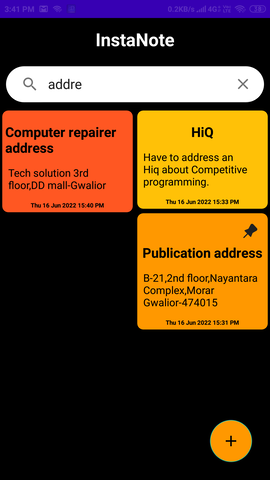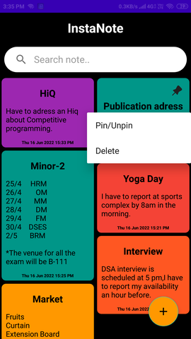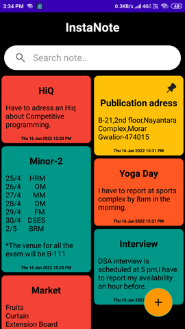 InstaNote Android application provides an easy to use interface to instantly create/fetch notes.