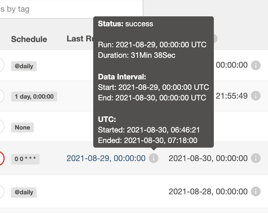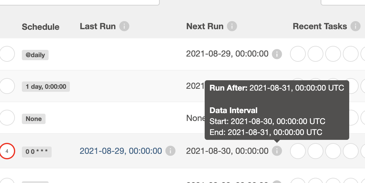 I updated Next Run to use the execution date to be consistent with Last Run. I also added a tooltip for the next run to show the create after and data interval. For Last Run, I decided to extend the use of the |