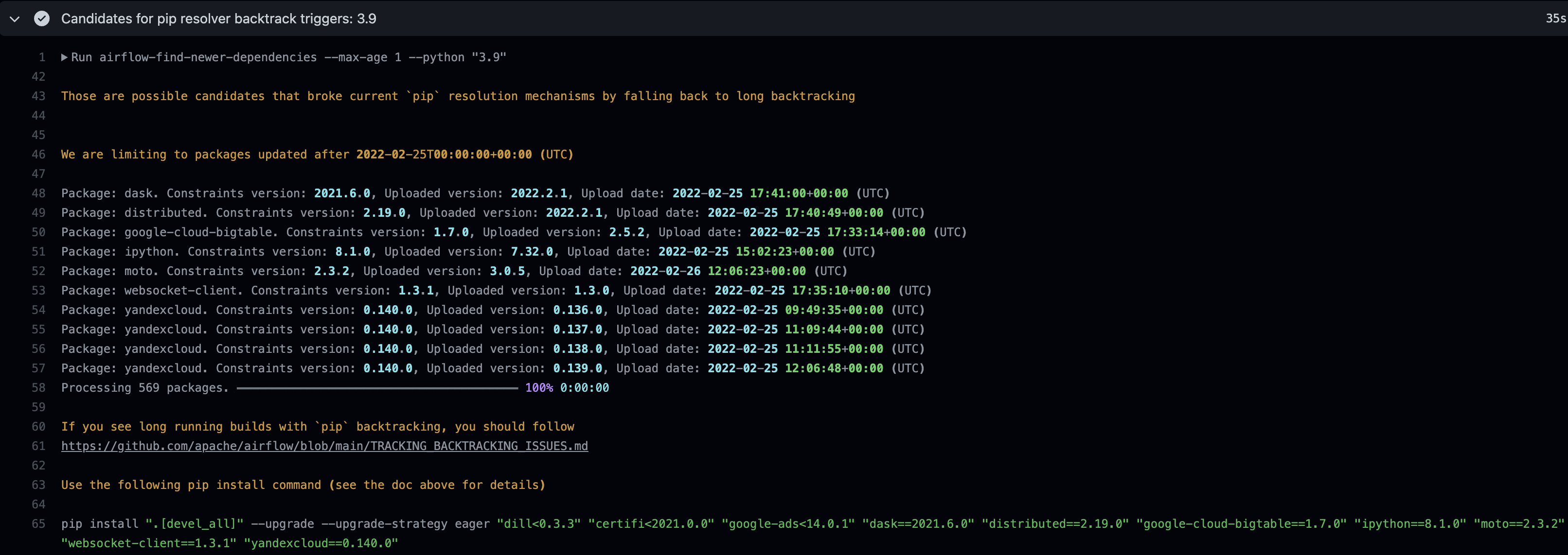 Looks good to me – a bit unhappy that we have to add all this code in Airflow. It would be brilliant if it could be contributed to pip itself instead. |