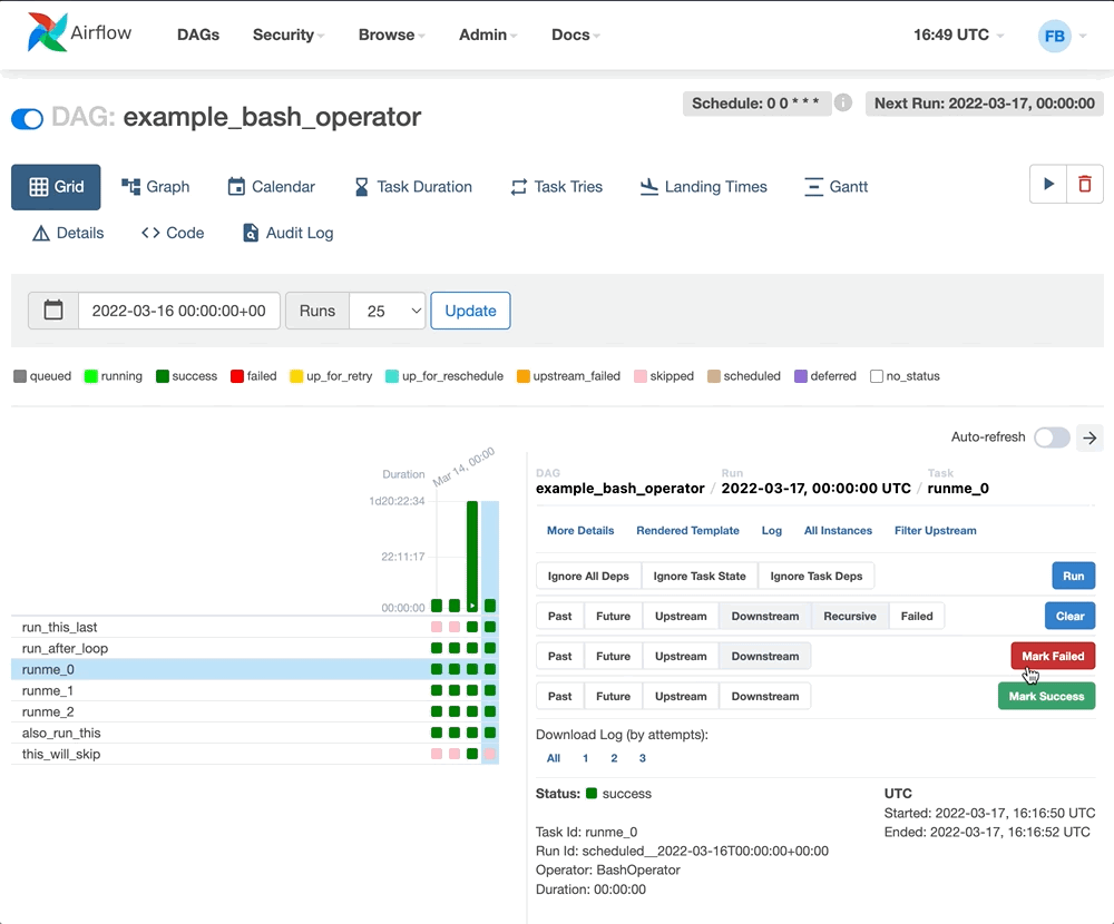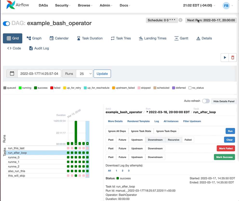 Add a details drawer to the right side of the grid view to quickly see details and actions for the DAG / Dag Run / Task Instance. This replaces the modal when clicking on a dag run or task instance. (Modals still exist for graph and gantt views)