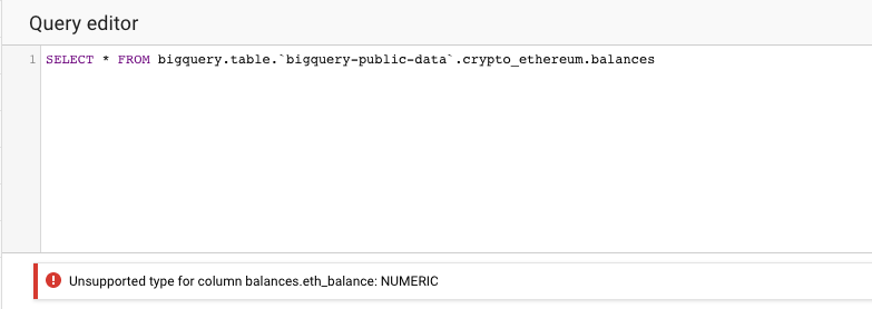 Caused by: java.lang.UnsupportedOperationException: Field type 'NUMERIC' is not supported (field 'value')