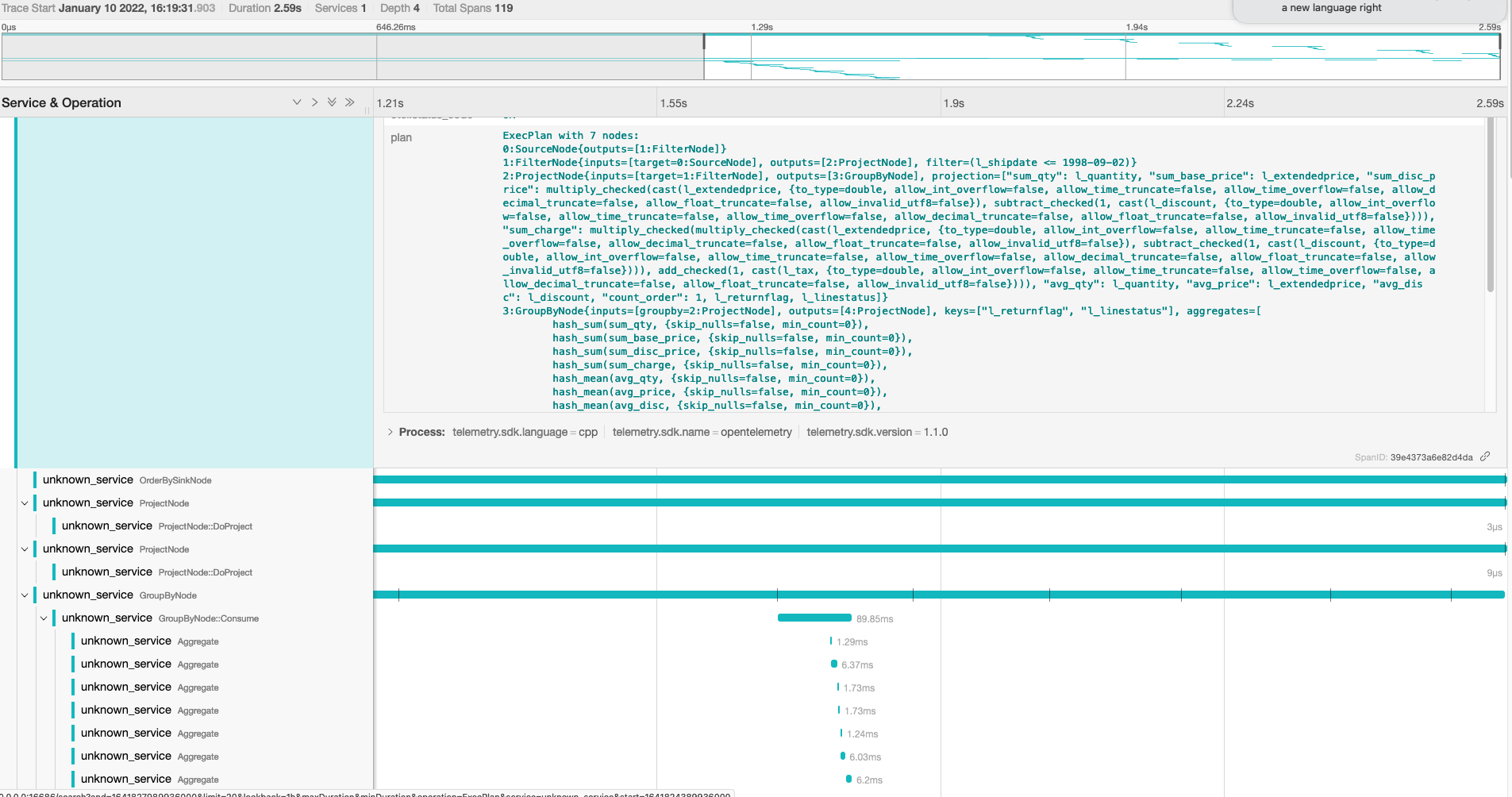 No further comments from me - let's merge once OrderBySinkNode is fully instrumented. |