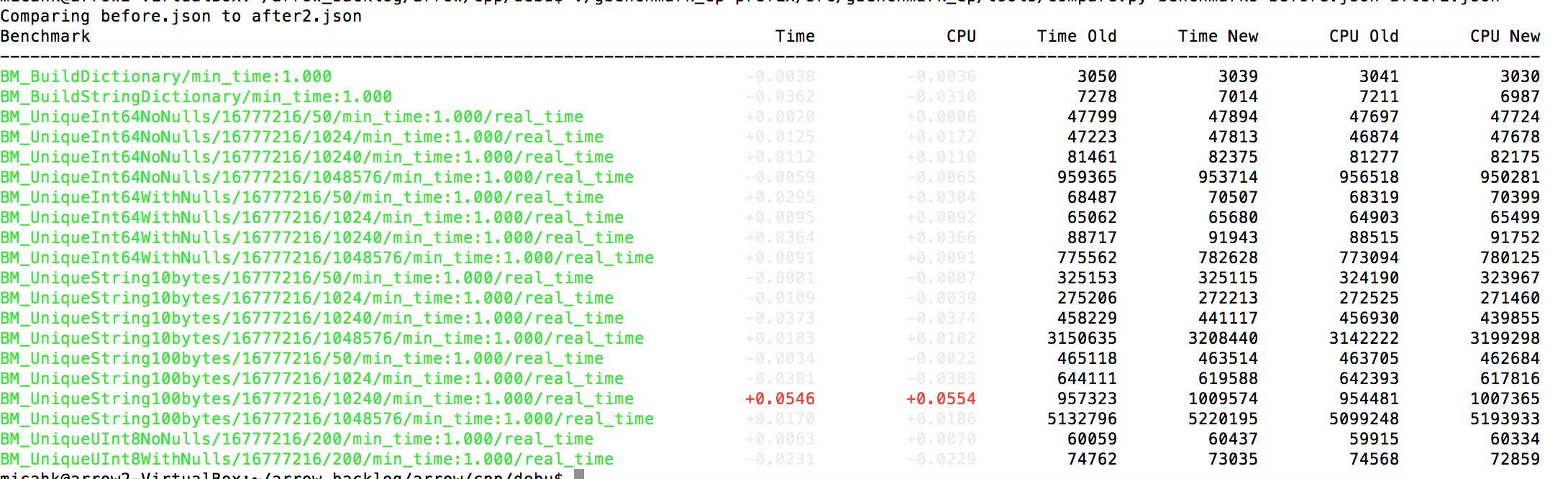 I ran on a mobile Xeon 2.8 ghz with the cores pinned at 2.8ghz / no turbo boost and things looking OK here before after merging. thanks @emkornfield! |