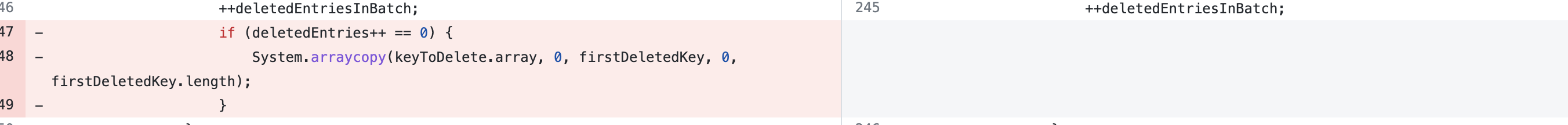 In #3144, we reverted the changes of #2686, but after the revert, the self-increment behavior of deletedEntries was also removed, resulting in deletedEntries No assignment, always 0.