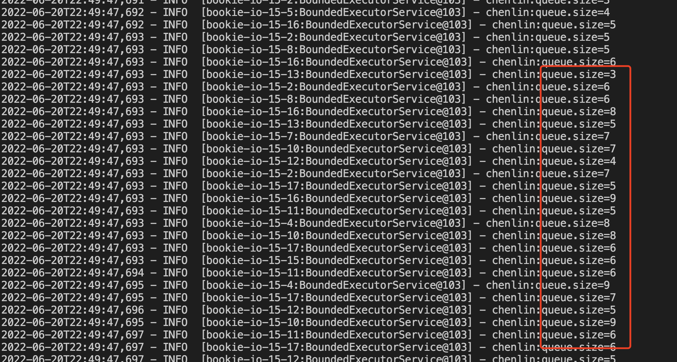 I print out the queue size every time I submit a task, and then set the queue size to 1: