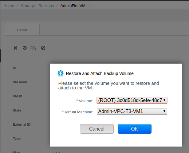 • Restore volume and attach it to a VM from a backup