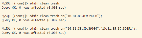 admin clean trash on ("BackendHost1:BackendHeartBeatPort1", "BackendHost2:BackendHeartBeatPort2", ...);