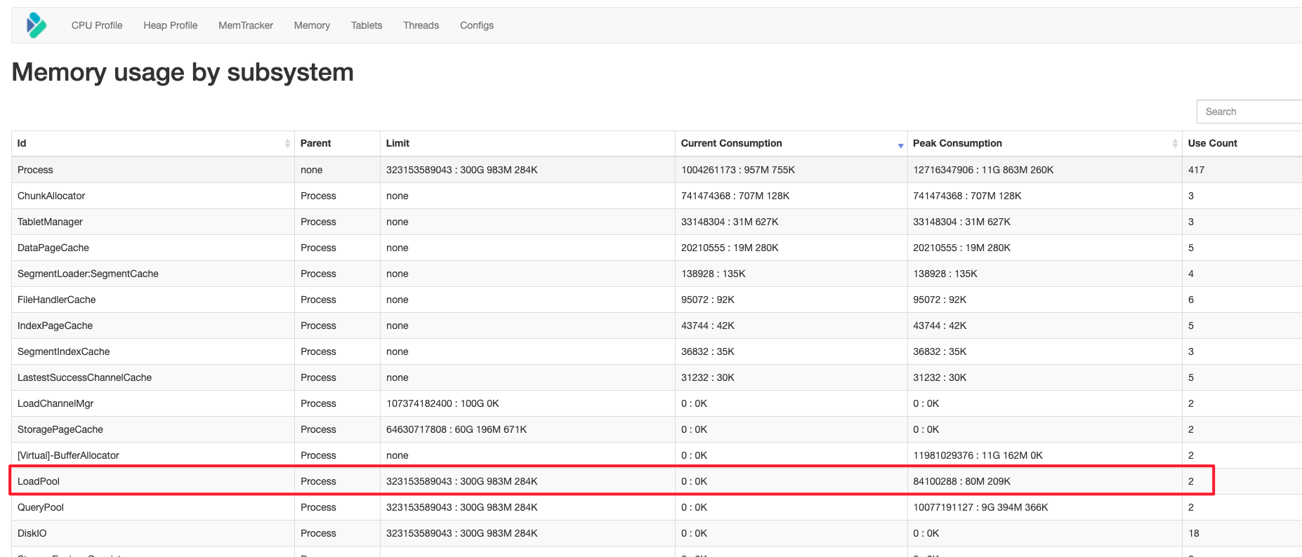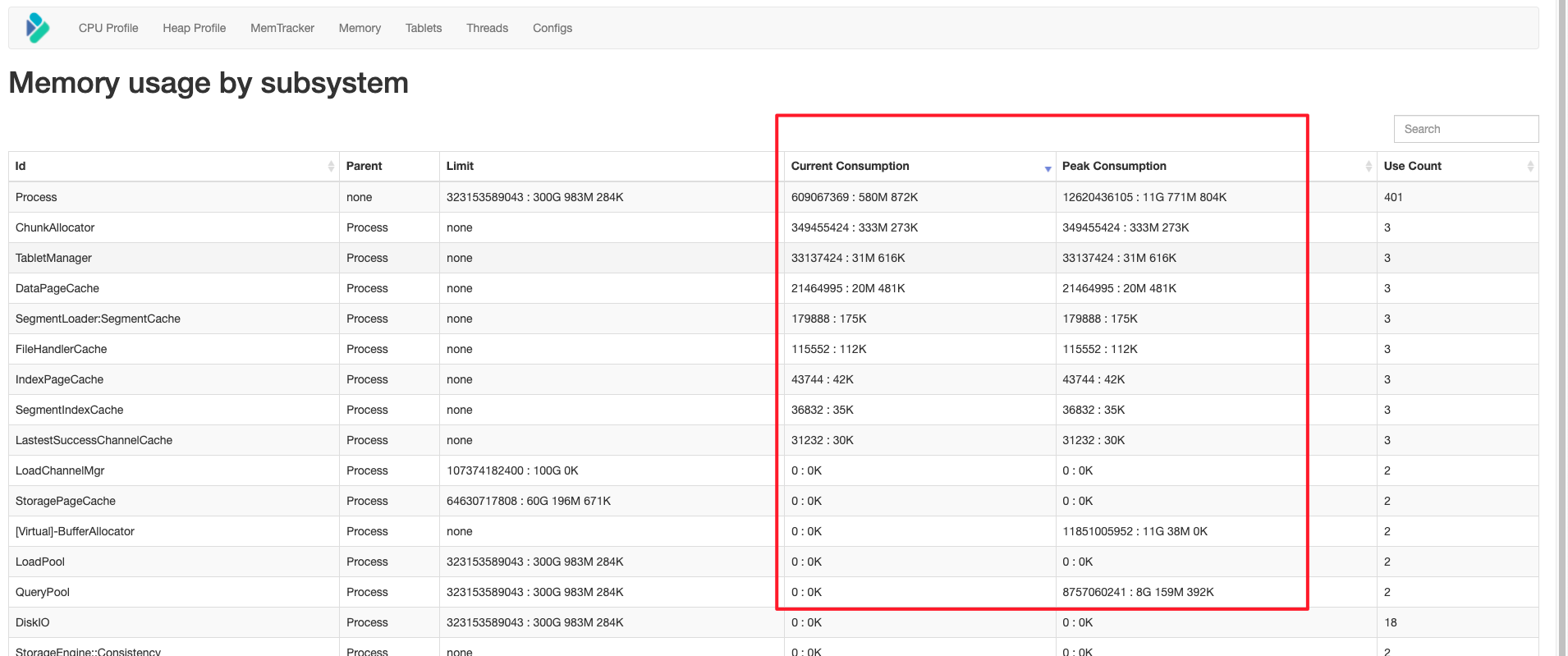 Note: LoadChannelMgr consumption is 0, because this pr has not really called switch tls mem tracker, and the next pr will be modified in batches.