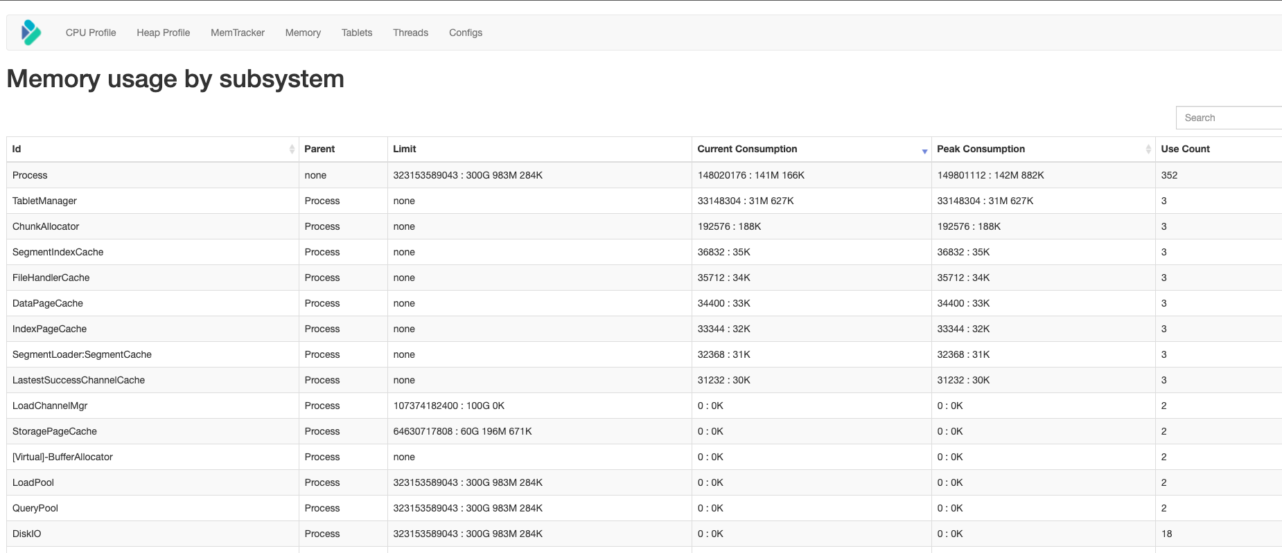 …rate more detailed memory usage (apache#8669) Based on apache#8605, Separate out the memory usage of each operator from the Query/Load/StorageEngine mem tracker.