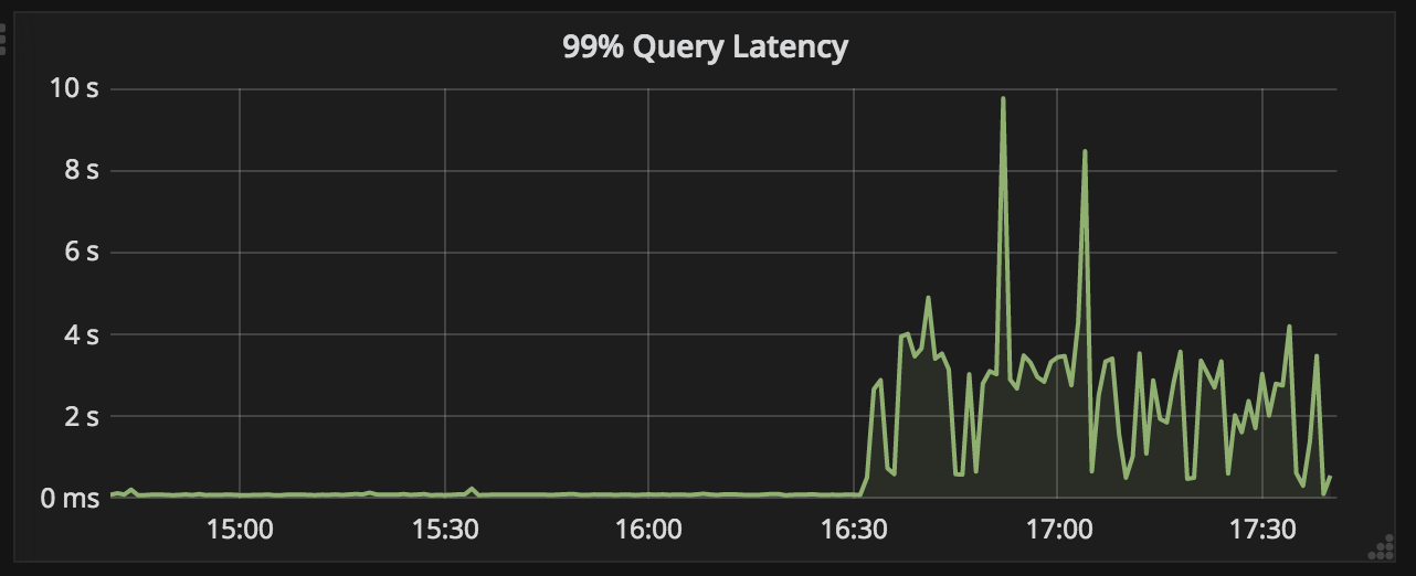 After upgrading some of our historical nodes from 0.11.0 to 0.12, we observed significant performance degradation on these nodes. Below is a graph showing 99% query latency of one node. Before upgrade, it's around 100ms. After upgrade (around 16:30), it soars to almost 10s.
