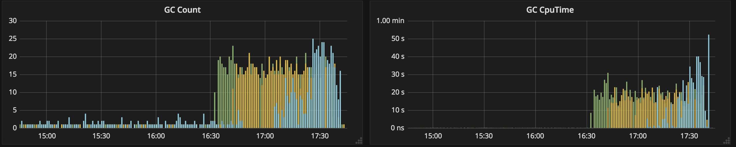 GC log shows frequent and long STW pauses, which could be the direct cause of the increase in latency.