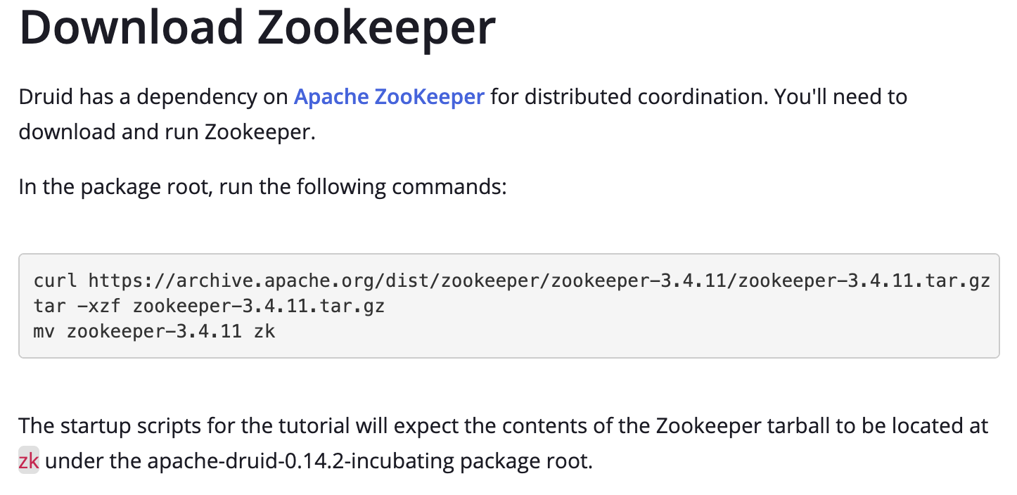 The current quickstart requires an extra step to download and unpack zookeeper.