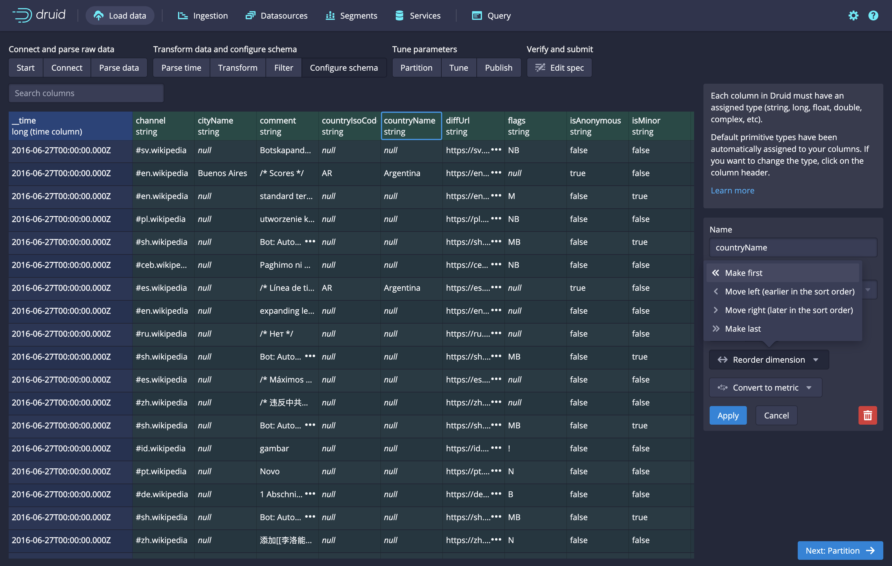 dimensionsSpec(and the ordering in the final segment. This makes it impossible to configuresingle_dimpartitioning effectively.Also this PR contains a bunch of polish: