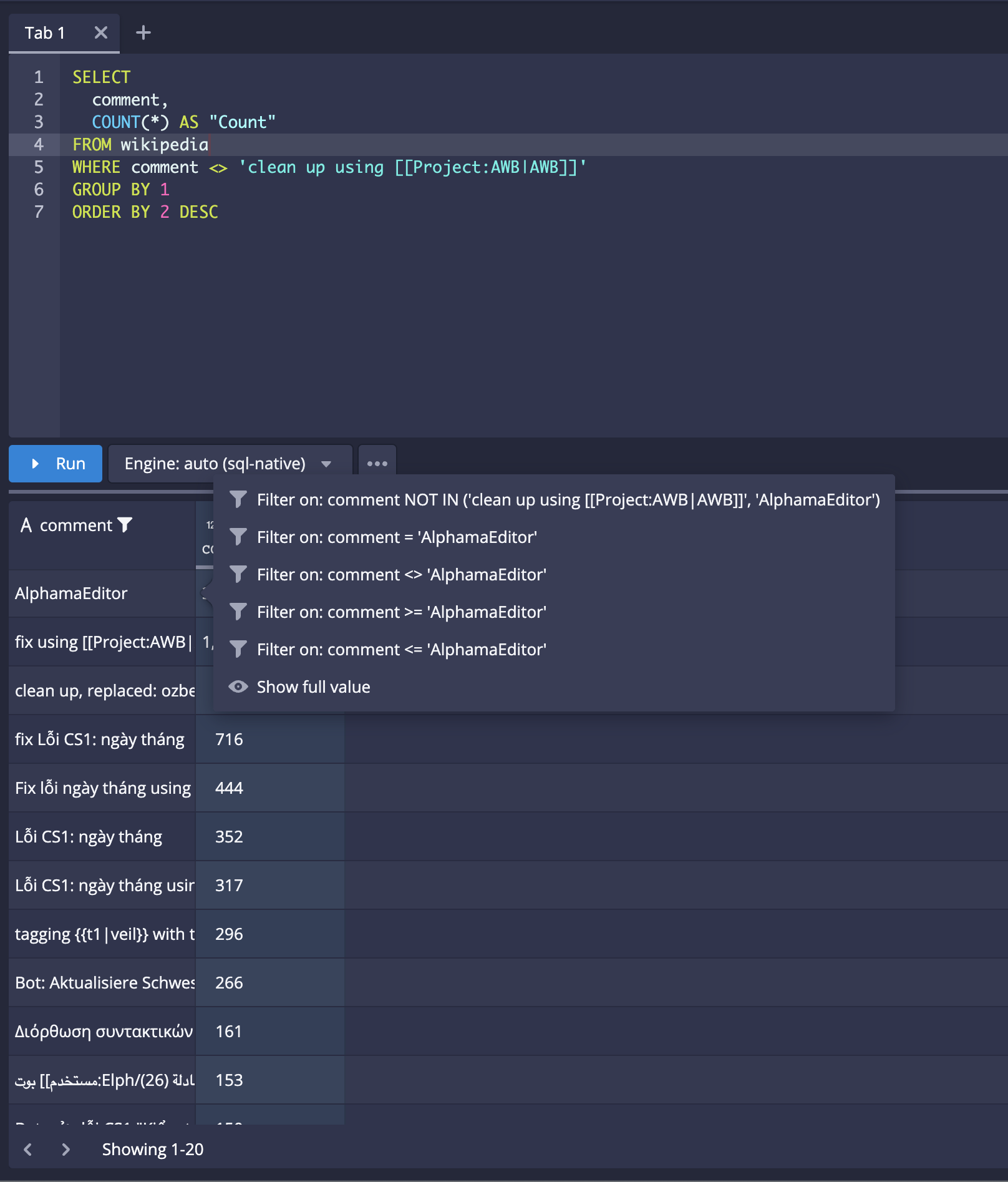Web console: making the cell filter menu more functional, removing the old query view, and updating d3#13169